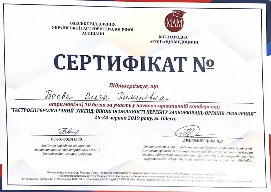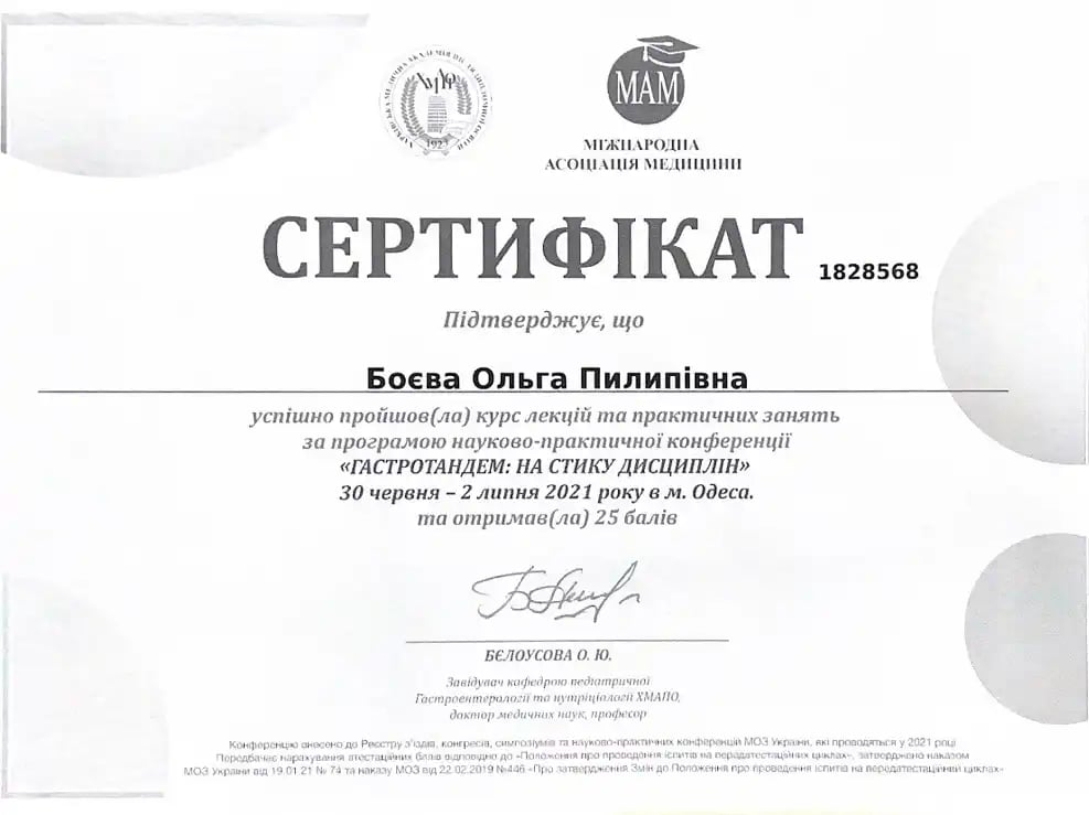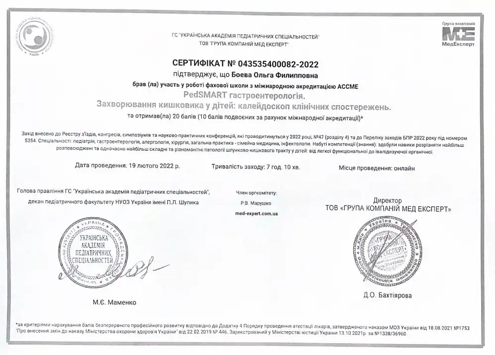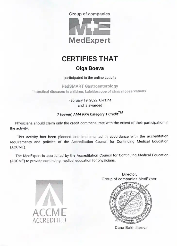 Получила специализацию детского врача-гастроэнтеролога