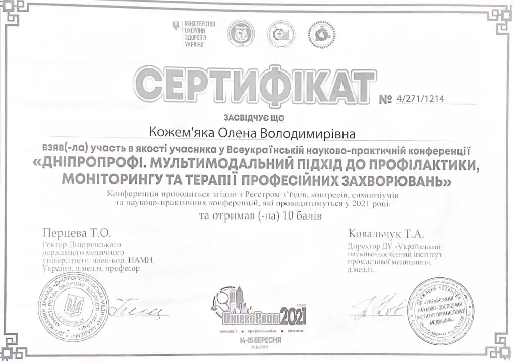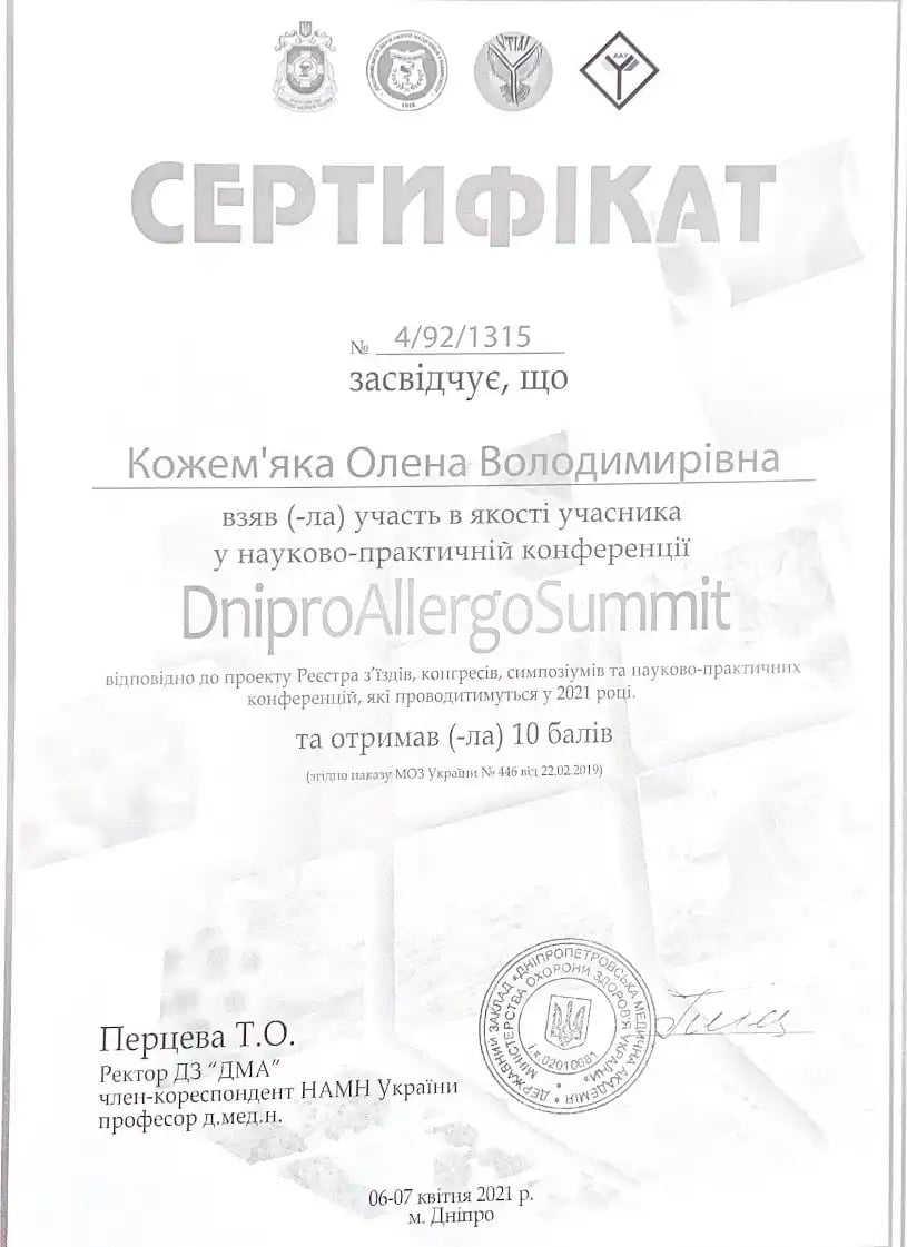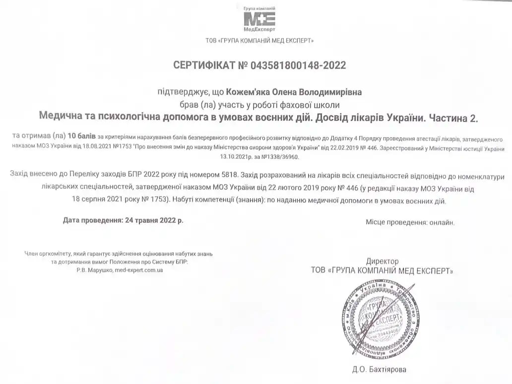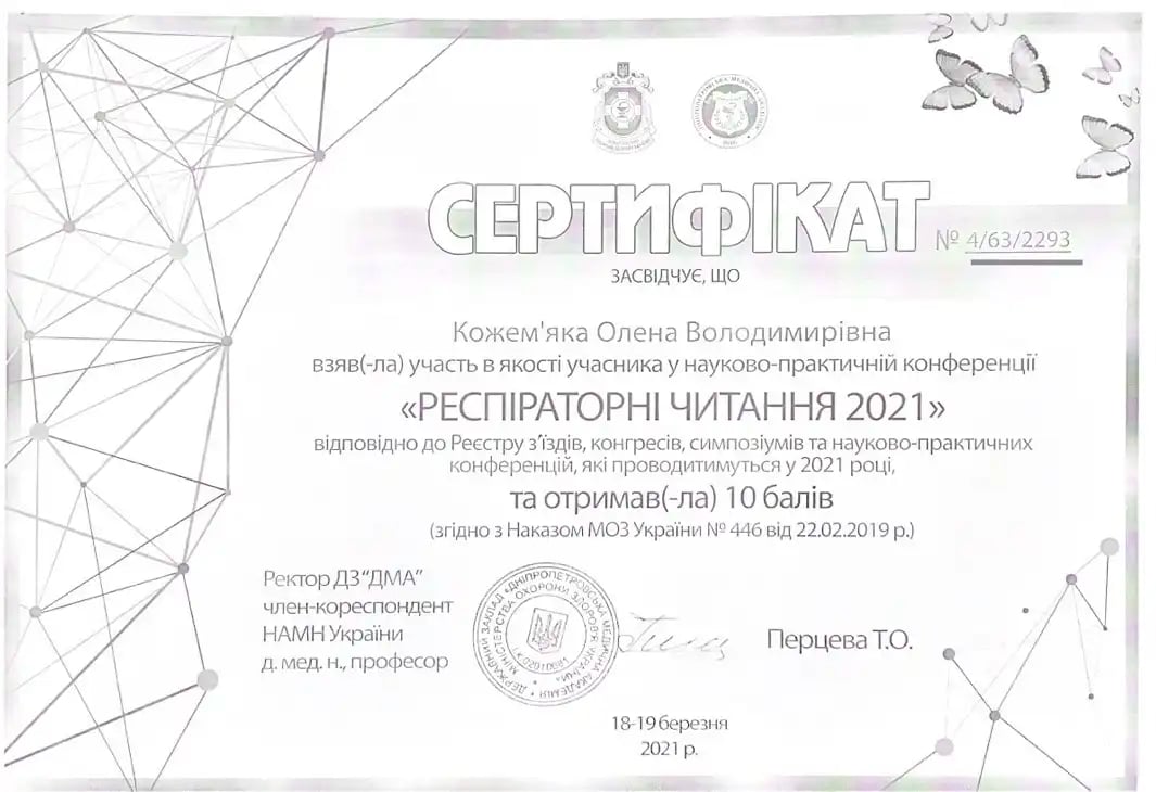 Получила специализацию по нефрологии в Харьковской медицинской академии последипломного образования.