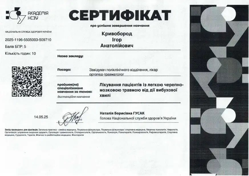 Работал врачом-ортопедом-травматологом в КНП «Чернобаевская районная больница».