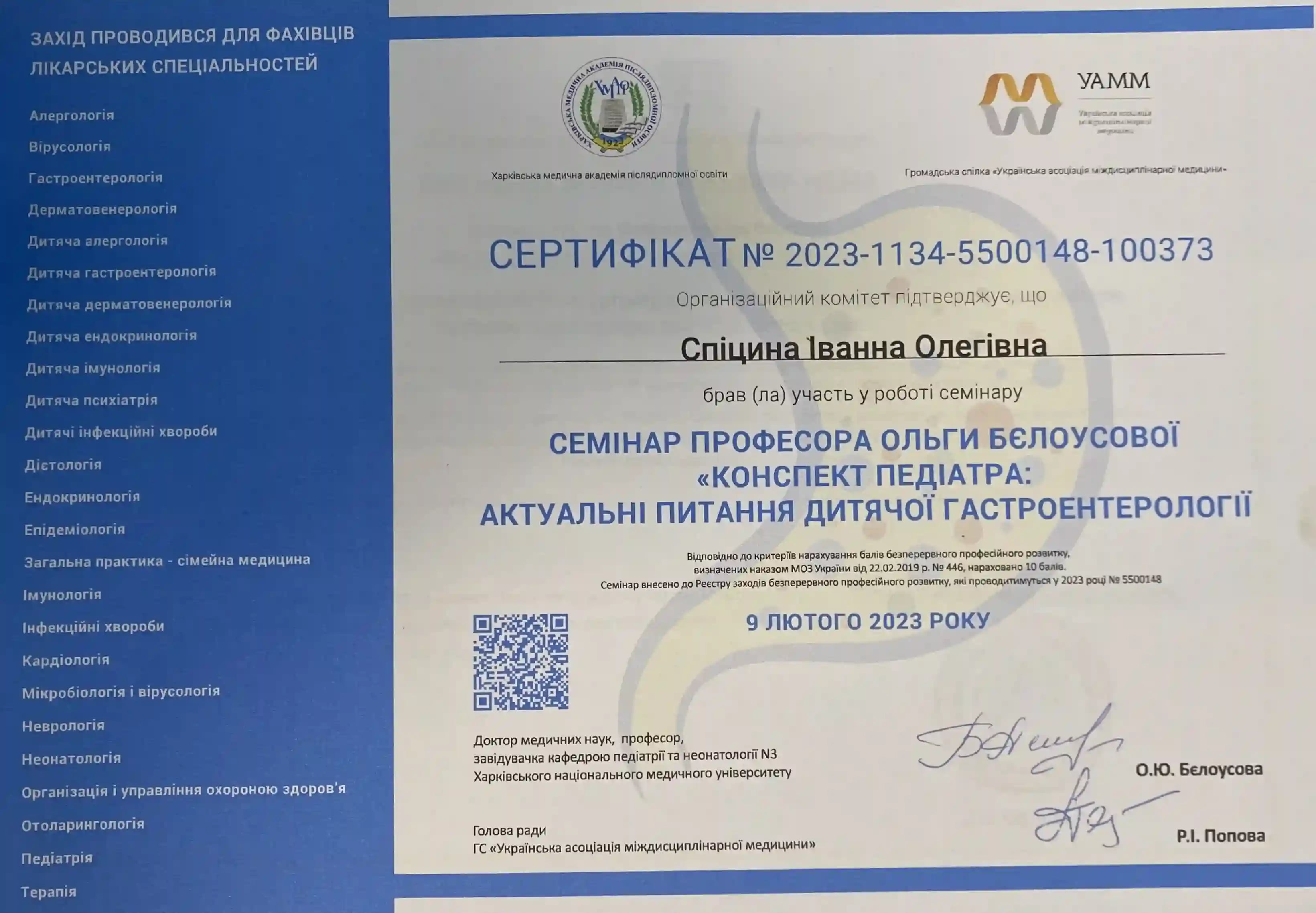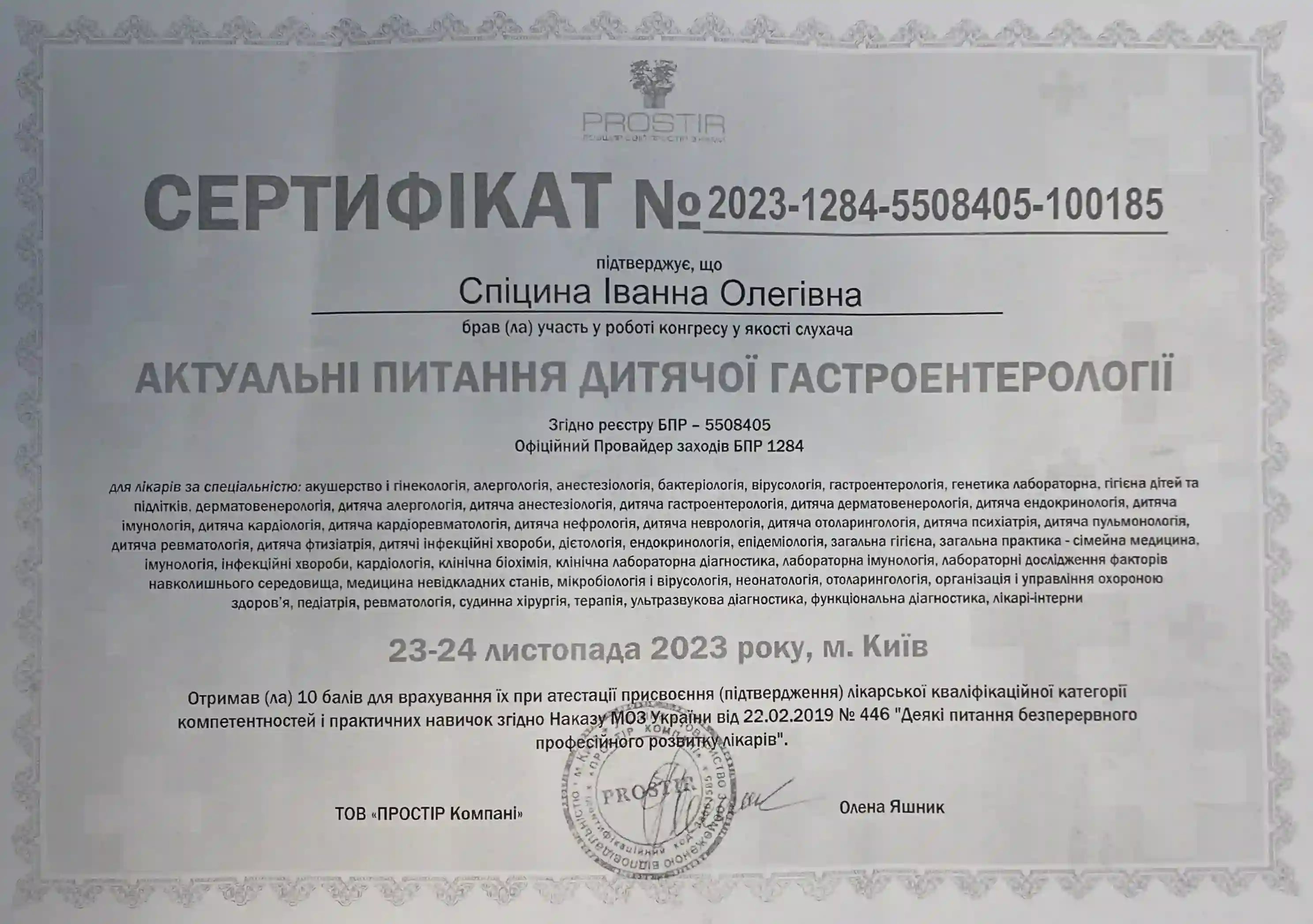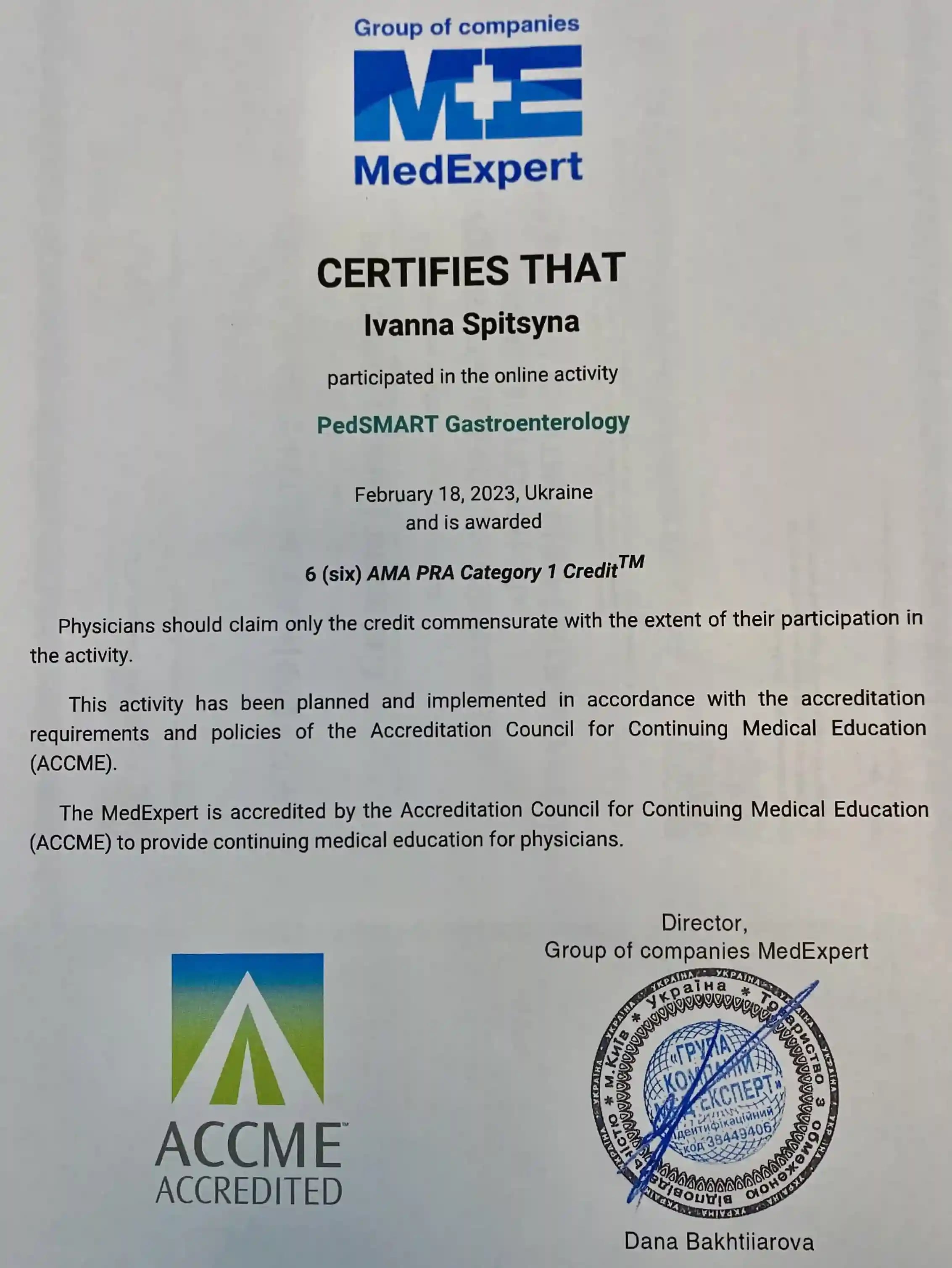 Получила специализацию «Детская гастроэнтерология» в ХМАПО