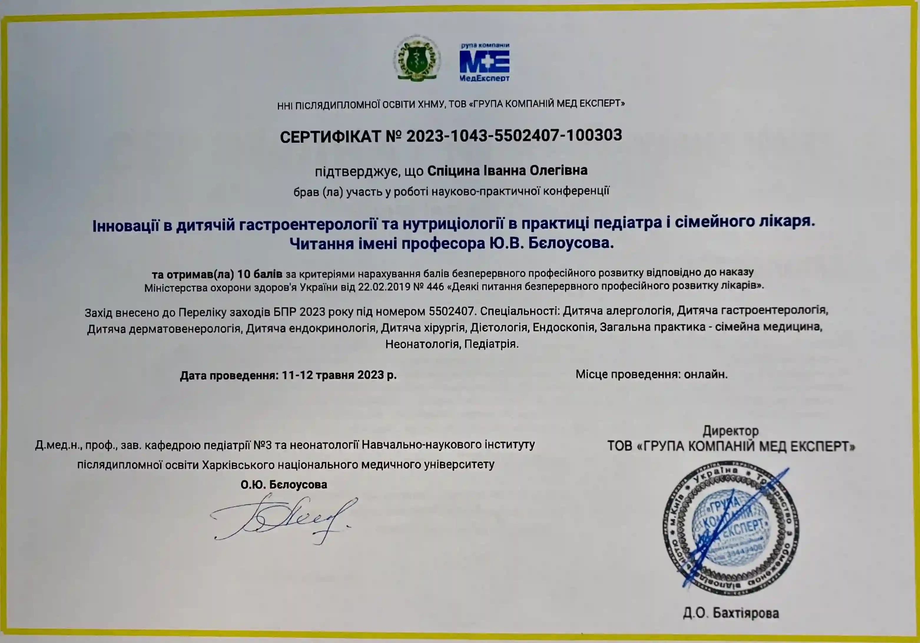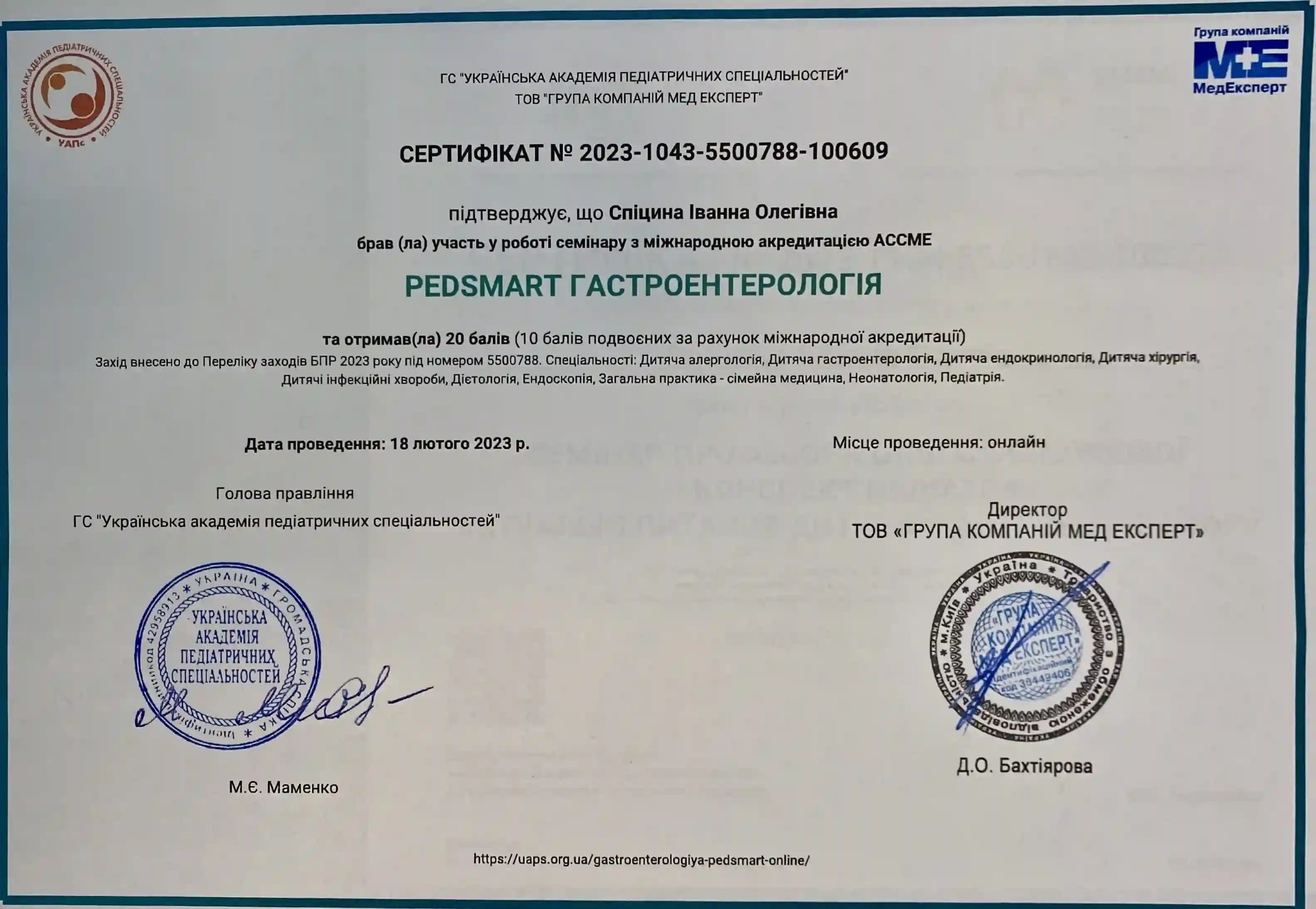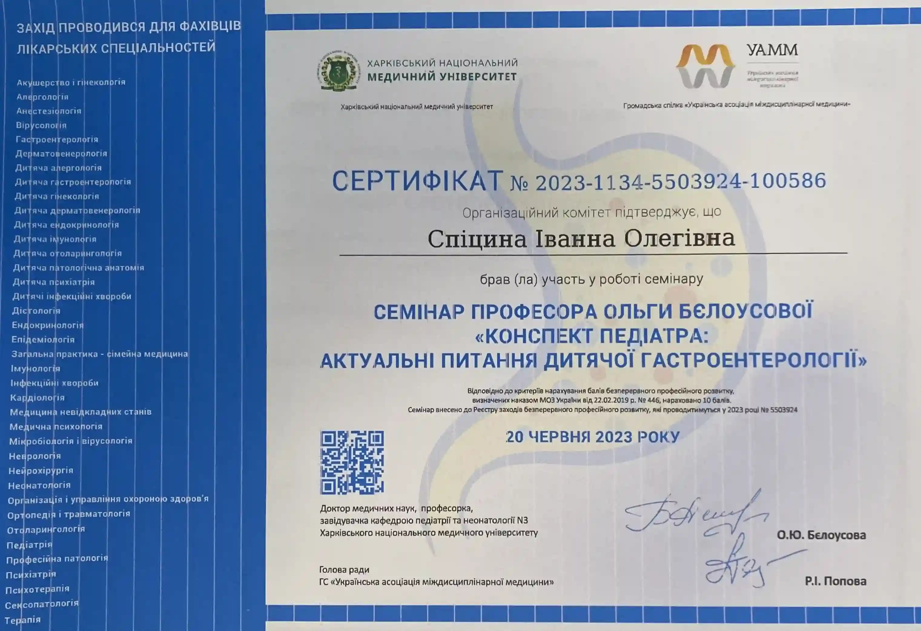 Получила специализацию «Детская гастроэнтерология» в ХМАПО
