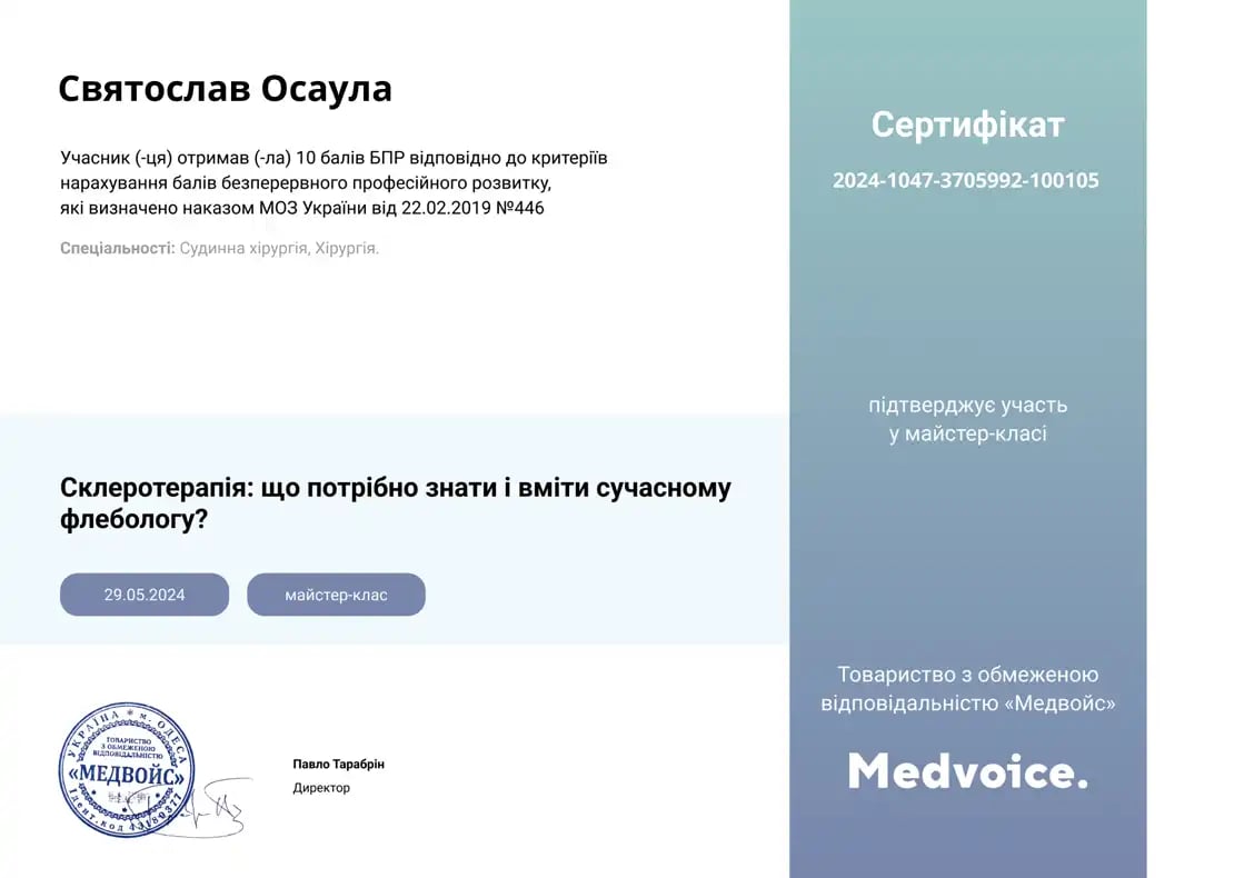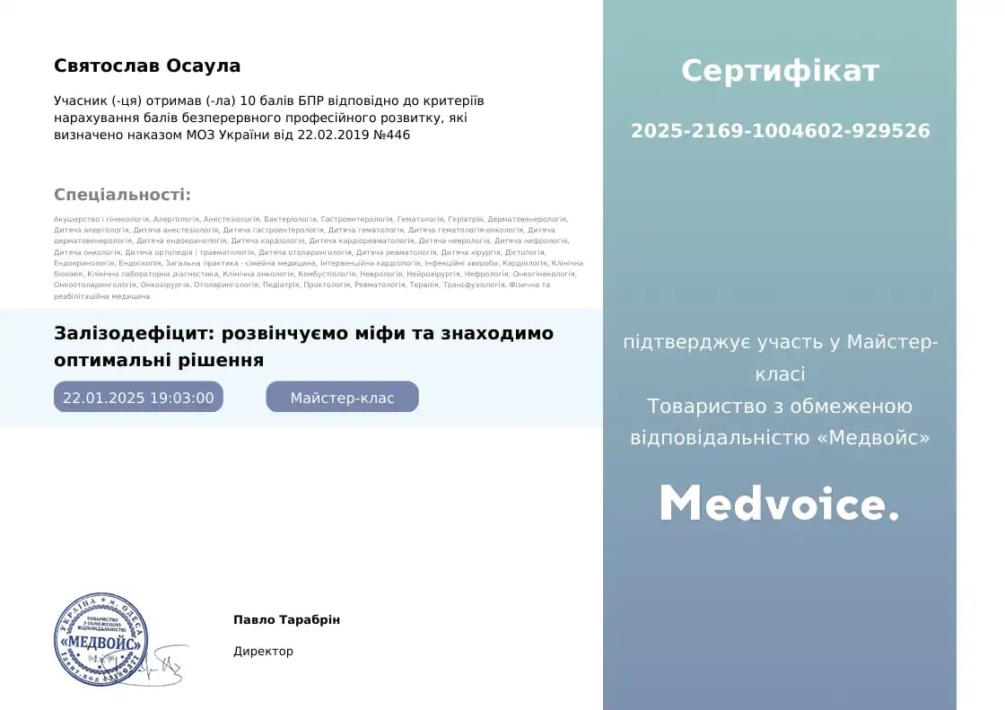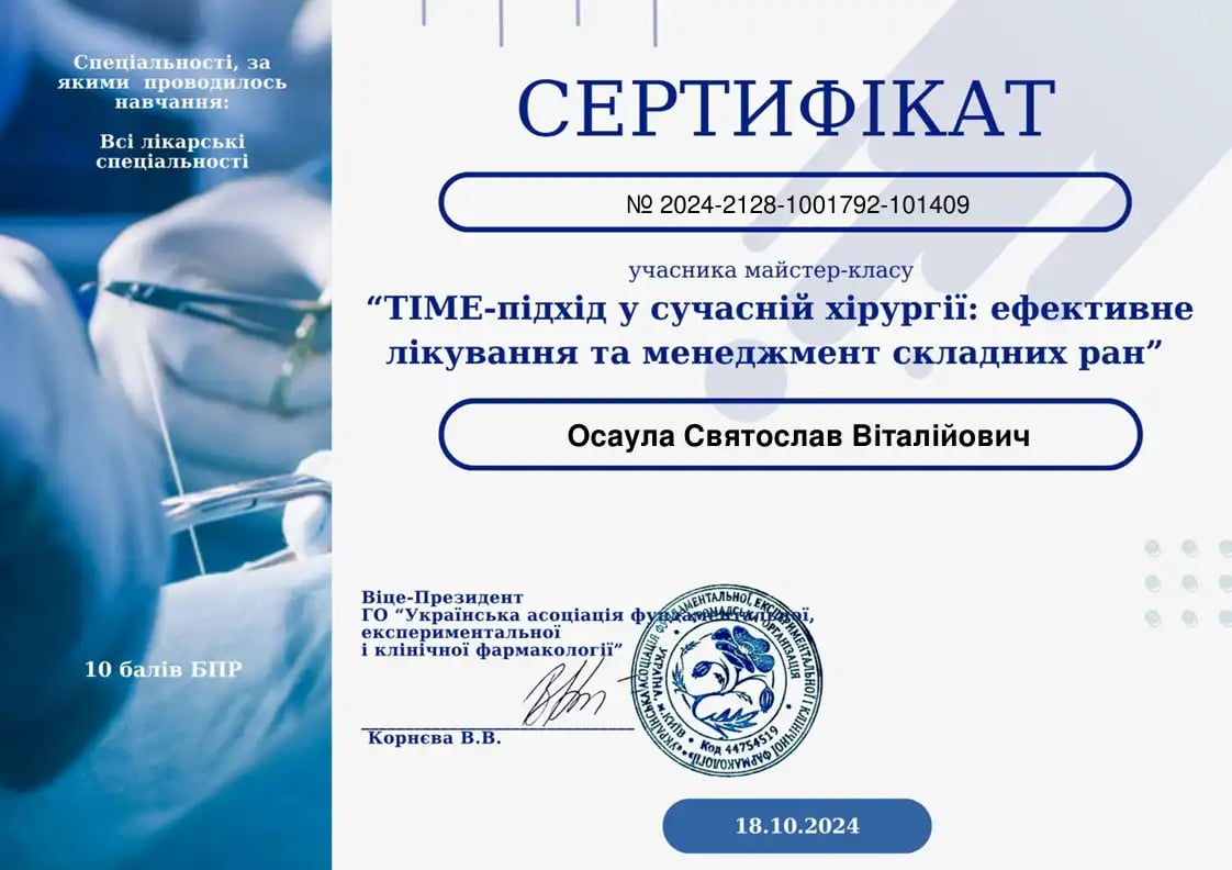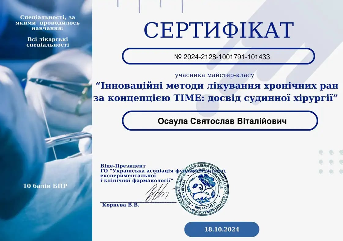 Закінчив спеціалізацію по ендоскопії в Харківському медичному університеті, отримав сертифікат. З лютого по липень працював ургентним ендоскопістом в КНП Третя Черкаська міська лікарня швидкої медичної допомоги.